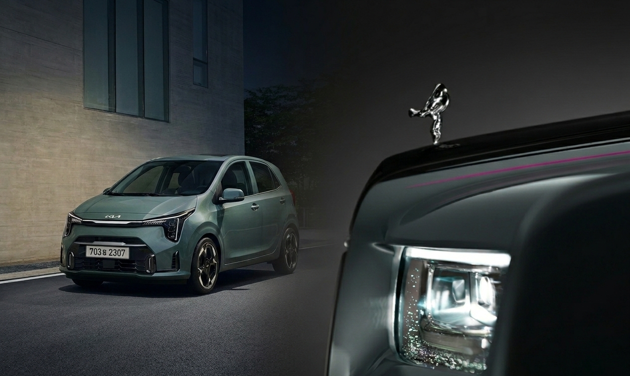 기아 모닝(왼쪽), 롤스로이스 팬텀 사진=AI 합성, 원본 각사이미지 확대보기