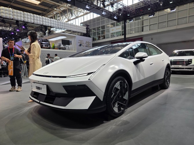 아이오닉 V는 현대차가 중국 전용으로 내놓은 첫 번째 아이오닉 브랜드 모델이다. 글로벌 시장에서 판매 중인 SUV 아이오닉 네이밍을 따르지만, 숫자가 아닌 로마자 ‘V’를 사용해 차별화했다. 외관은 날카로운 쐐기형 세단 형태로 설계되어 기존 현대차의 전기차 라인업과는 궤를 달리하는 독창적인 분위기를 자아낸다.