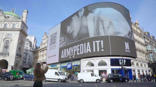 현대자동차는 영국 런던의 피키딜리 서커스 전광판에 22일부터(현지시간) 방탄소년단이 세계 팬을 대상으로 펼치는 ‘방탄소년단 글로벌 캠페인’ 티저영상을 상영하기 시작했다.