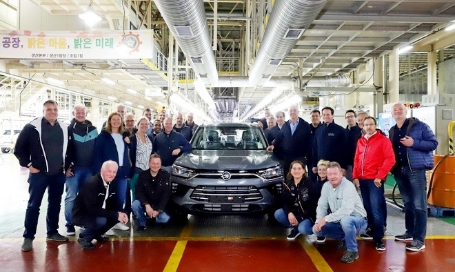 이미지 확대보기쌍용차 평택공장을 방문한 유럽 대리점 관계자들이 코란도와 기념사진을 찍고 있다. 사진=쌍용차