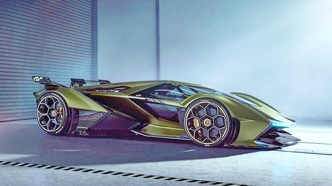 람보 V12 비전 그란 투리스모는 흥미로운 디자인을 특징으로 한다. 이 가상 콘셉카는 1인승으로, 엔진은 최근 프랑크푸르트 모터쇼에서 공개된 람보르기니 시안 FKP 37과 동일하가.