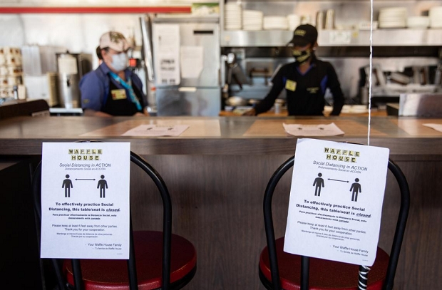 지난 4월 코로나19 여파로 텅빈 미국 조지아주 매디슨의 한 레스토랑 모습. 사진=로이터이미지 확대보기