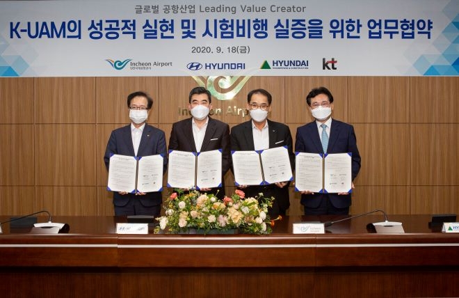 현대건설은 인천국제항공사, 현대자동차, KT와 '한국형 도심 항공교통(K-UAM)의 성공적 실현 및 비행실증'을 위한 업무협약을 체결했다고 20일 밝혔다.