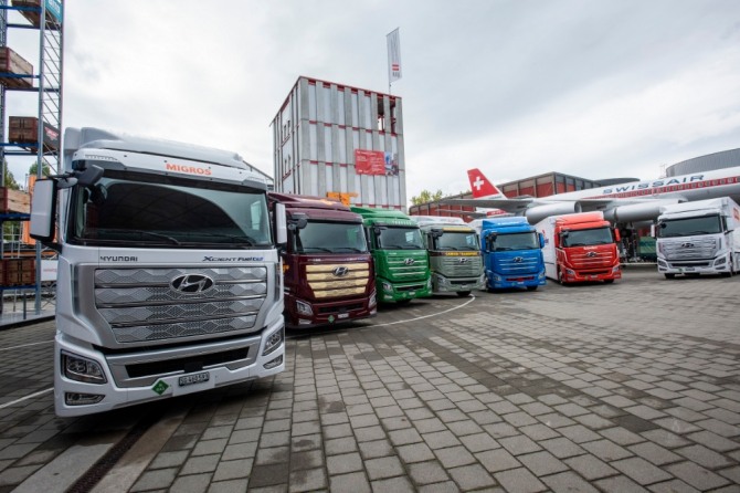 이에 앞서 현대차는 양산형 수소트럭 '엑시언트'를 스위스에 건냈다. 총 10대 가운데 1차로 7대가 지난 7일(현지시각) 스위스 내 유통·물류기업 등 고객사에 전달됐다. 나머지 3대는 이달 말에 인도될 예정이다.