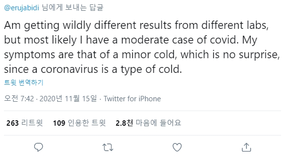 머스크는 그럼에도 “서로 다른 진료소에서 완전히 서로 다른 결과나 나오고 있다”는 점을 강조해 코로나 진단검사에 대한 불신을 완전히 거두지는 않았다.