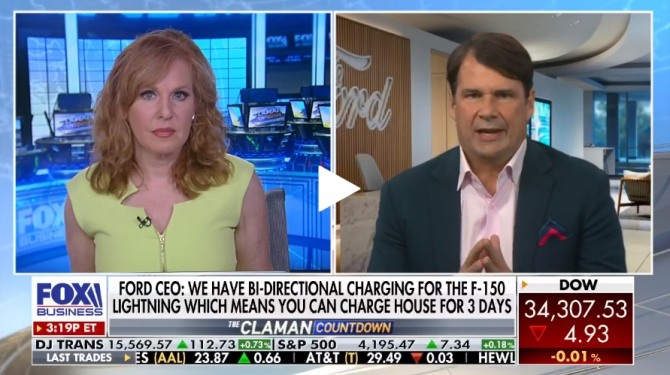 짐 팔리 포드차 CEO(오른쪽)가 26일(현지시간) 폭스뉴스에 출연해 질문에 답하고 있다. 사진=폭스뉴스