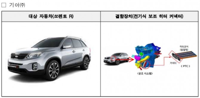 이미지 확대보기전기식 보조 히터 커넥터 문제로 자발적 리콜에 들어간 쏘렌토 R(2012년 6월 29일~2014년 8월 21일 제작) 표=국토교통부 제공