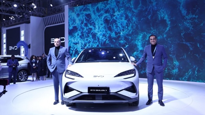 이미지 확대보기BYD 인디아는 바라트 모빌리티 글로벌 엑스포 2025에서 기대를 모았던SEALION 7 Pure Performance eSUV를 선보였다. 사진=BYD
