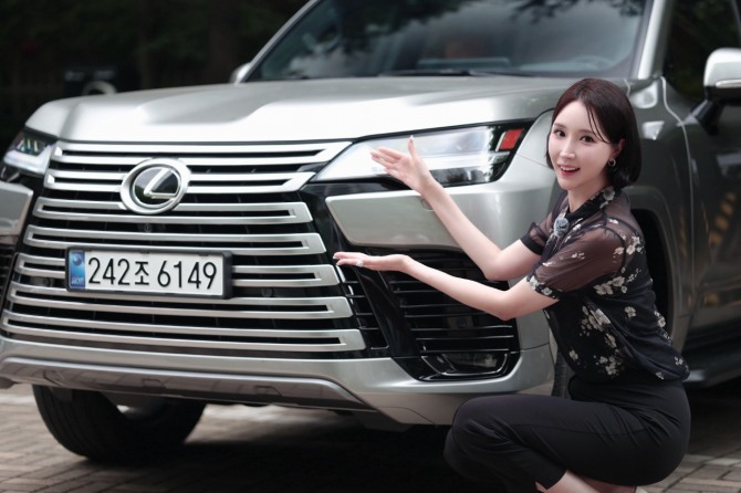 이미지 확대보기나연진 글로벌모빌리티 앵커가 렉서스 대형 SUV '디 올 뉴 렉서스 LX700h'와 함께 포즈를 취하고 있다. 사진=이병주 글로벌모빌리티 PD